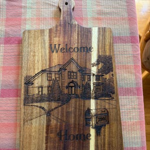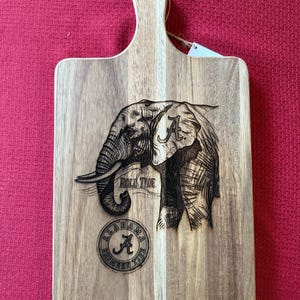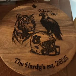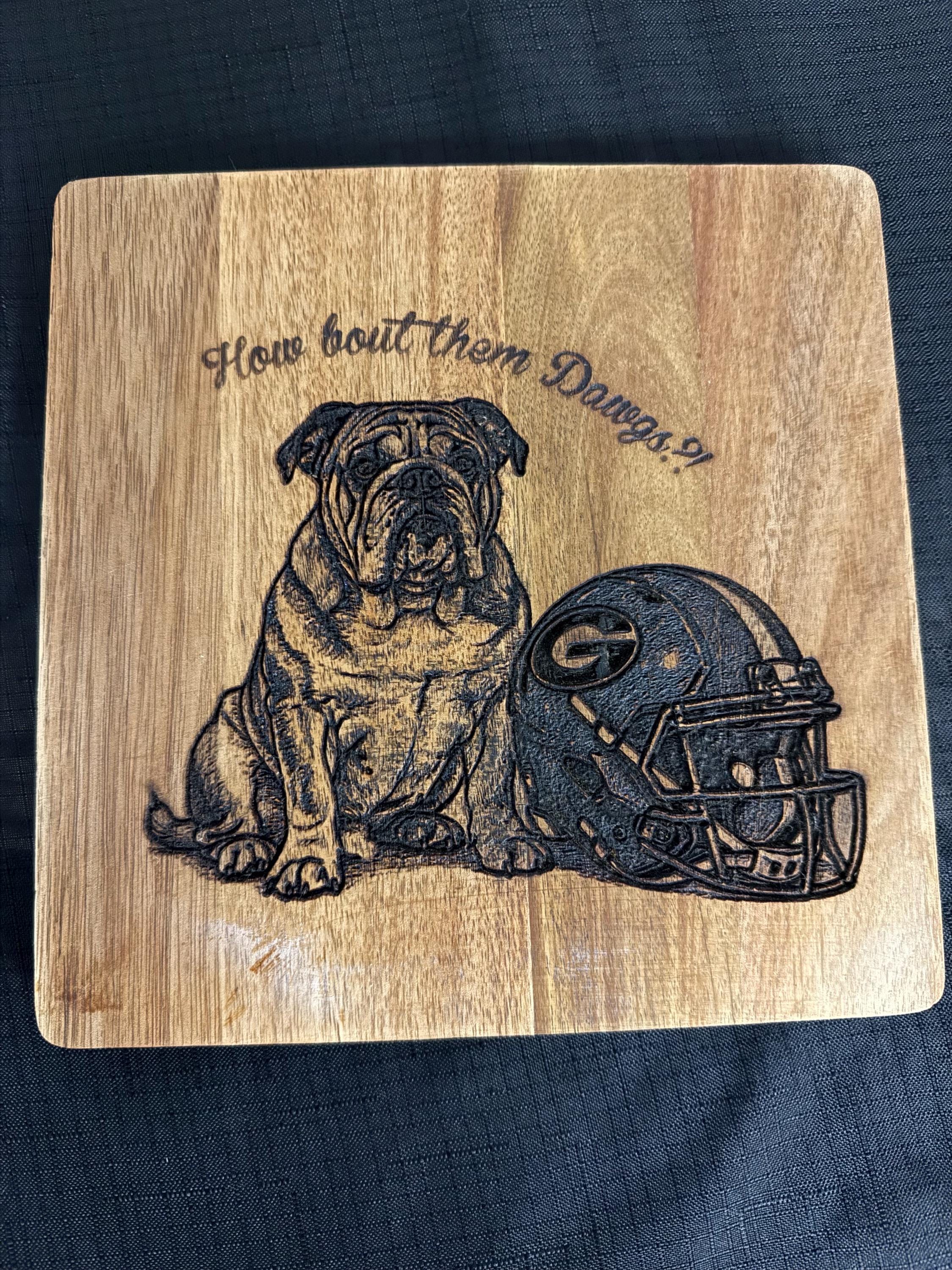 we use staff graphic illustrator skills and ai assist to create cutting boards and service plates that are a step above the standard logo product - when you or your fan has high standards, we are the place to come for that special gift. Each board or plate is designed and laser engraved created individually;
