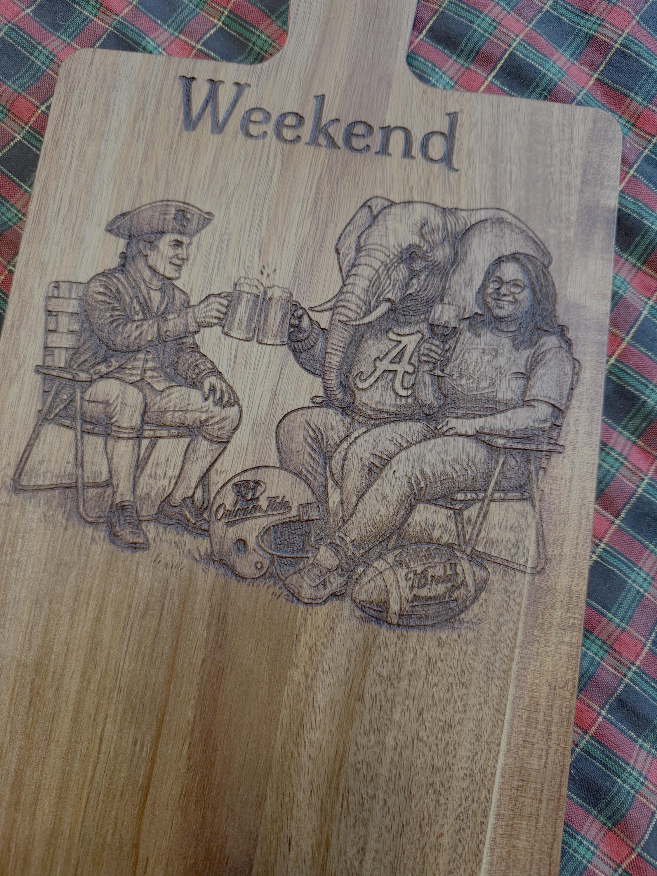 the ultimate gift for the ultimate sports fan with more than one team or sport! fully customized, one of a kind designed to your specs, and can include your sports fans picture also! Made of quality Acacia wood, this will be a standout at game day parties and tailgates, and completely personalized including verbiage. I need about four days to create these once I have all information - you will have a proof of your custom design in 48 hours most cases.